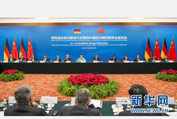 新華社北京6月14日電(記者白潔)國務院總理李克強13日下午與德國總理默克爾在人民大會堂共同出席中德經濟顧問委員會座談會,并同與會的中德兩國經濟界代表座談交流。