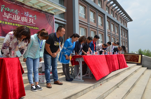 ??? 大會(huì)最后,在謝院長(zhǎng)的主持下,全體畢業(yè)生完成謝師禮拜儀式,在謝院長(zhǎng)“禮成”聲中,2016屆學(xué)生畢業(yè)典禮圓滿完成。