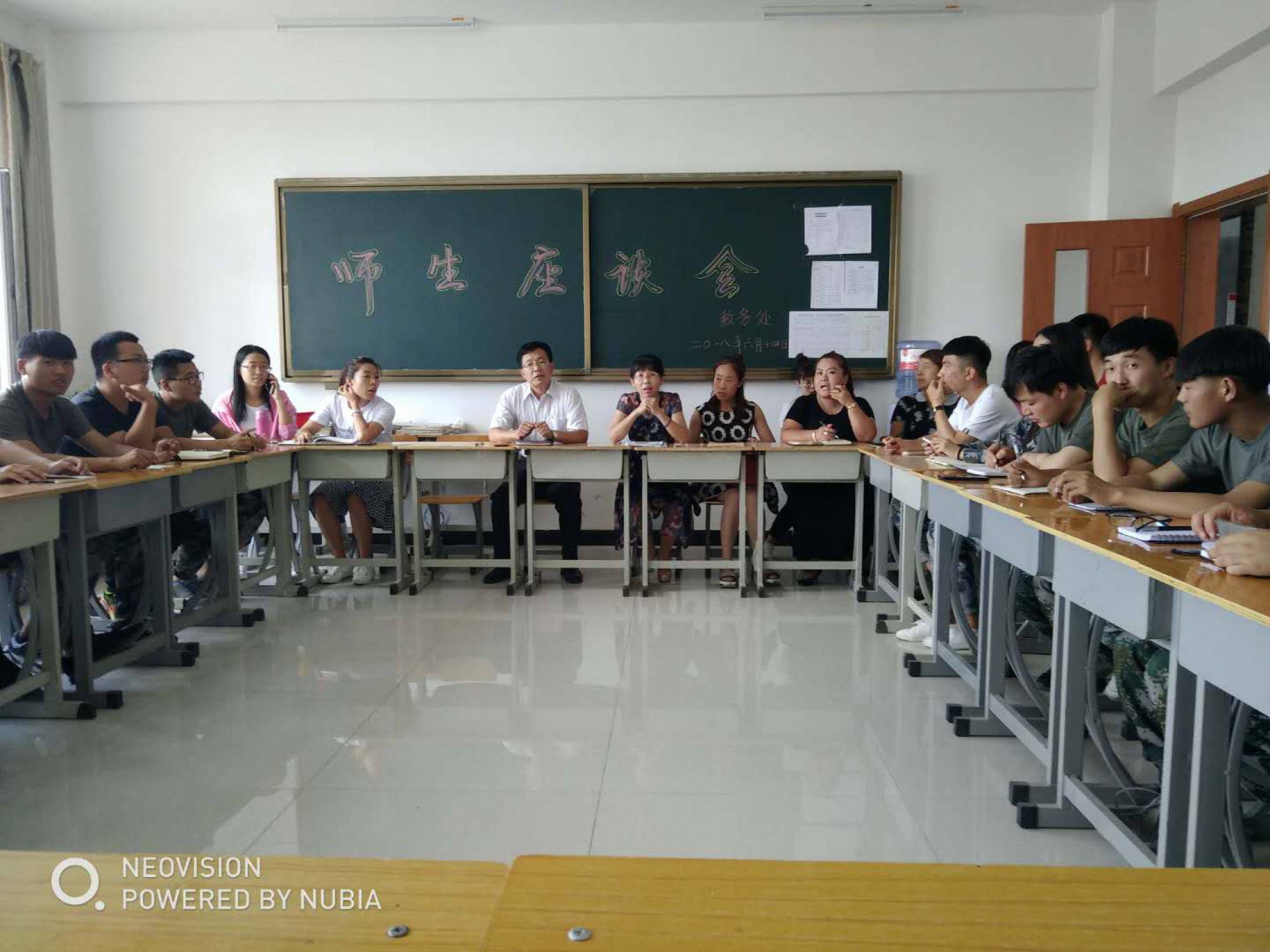 為了加強教學管理,提高教學質量,進一步了解全校教學狀況和學生的學習情況、增進師生情感,6月14日星期四下午, 教務處組織召開2017--2018學年第二學期師生座談會,對開學以來的教學情況進行交流。參加座談會的有教學副院長謝飛、教務處處長劉國華、專職教師、教務處全體人員以及33個班級的教務助理。座談會由劉國華處長主持。劉處長首先說明座談的目的是針對過去半學期教與學進行總結反思,教師與學生面對面充分交流,彼此尋找更合適的教學方法與學習方法,解決學生在學習和生活中遇到的問題。