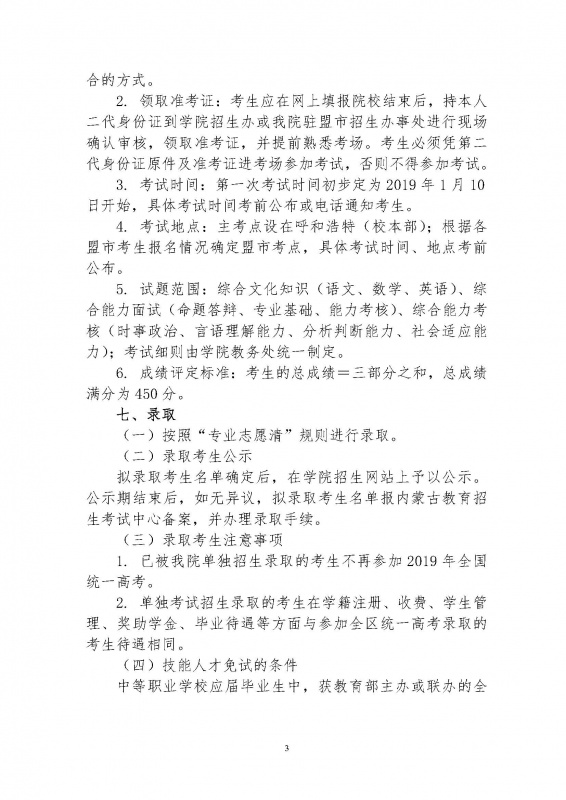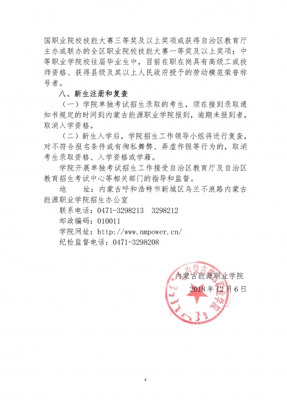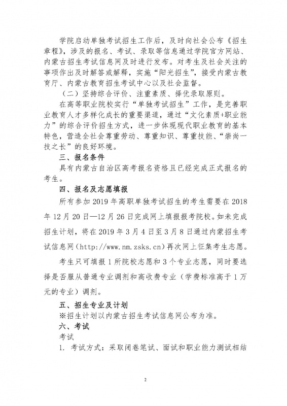 內蒙古能源職業學院能源 2019 年單獨考試招生工作方案