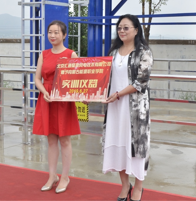 6月27日,在學院召開畢業典禮之際,匯通聚原常務副總段記平及人事行政副總李霄鵬與學院領導舉行了“實訓儀器”的贈予儀式,學院常務副院長張瑞英代表學院接受了牌匾。張院長表示,學院與企業要緊密聯系,協同育人,達到學校與企業的無逢對接,爭取在這片土地上培養出更多高質量的風電技術人才。