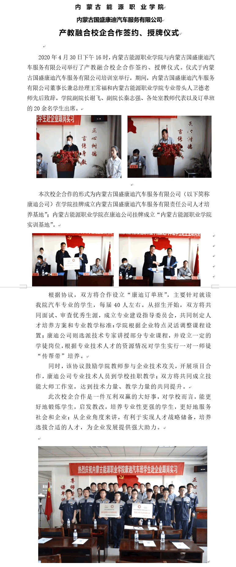 內蒙古國盛康迪汽車服務有限公司與產教融合校企合作簽約、授牌儀式