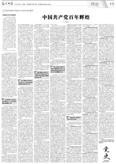從1921年到2021年,中國共產黨走過了整整一百年的歷程。這是用鮮血、汗水、淚水、勇氣、智慧、力量寫就的百年;是篳路藍縷、披荊斬棘、艱苦創業、砥礪前行、充滿艱險、充滿神奇的百年;是苦難中鑄就輝煌、挫折后毅然奮起、探索中收獲成功、失誤后撥亂反正、轉折中開創新局、奮斗后贏得未來的百年。爭取民族獨立、人民解放和實現國家富強、人民幸福,是中國共產黨百年歷史的主題和主線;“不懈奮斗史”“理論探索史”“自身建設史”,是中國共產黨百年歷史的主流和本質;把革命、建設、改革、復興事業不斷推向前進,是中國共產黨百年歷史的鮮明特征;逐步實現救國、興國、富國、強國的奮斗目標,是中國共產黨百年歷史的莊嚴使命。 中國共產黨百年歷史,可以劃分為四個歷史時期:從1921年7月中國共產黨建立至1949年10月中華人民共和國成立,是新民主主義革命時期;從1949年10月至1978年12月黨的十一屆三中全會召開,是社會主義革命和建設時期;從1978年12月至2012年11月黨的十八大召開,是改革開放和社會主義現代化建設新時期;從2012年11月至今是中國特色社會主義新時代。在這四個歷史時期,中國共產黨完成和推進了四件大事。四件大事鑄就了中國共產黨百年輝煌。