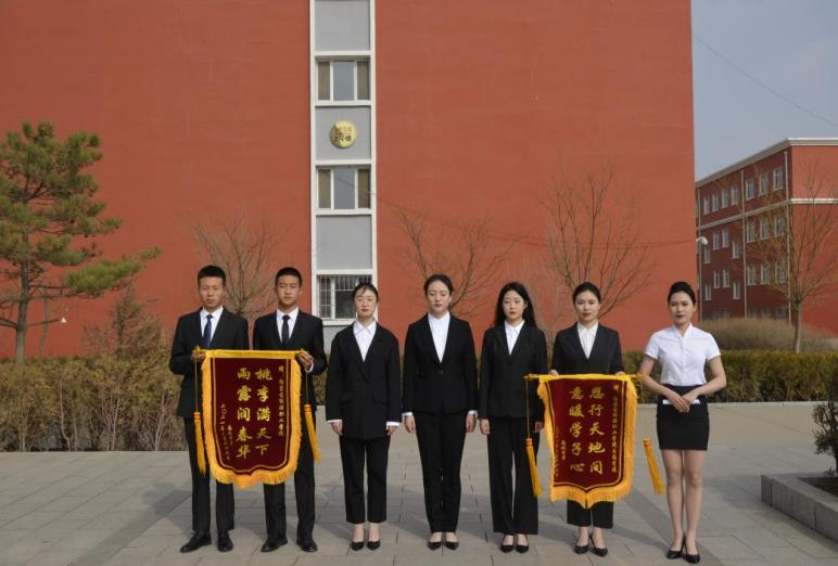 八位優秀學生共同為母校送上錦旗,感謝他們在能源職業學院生活學習中的每一位老師,感謝母校的培育之恩。