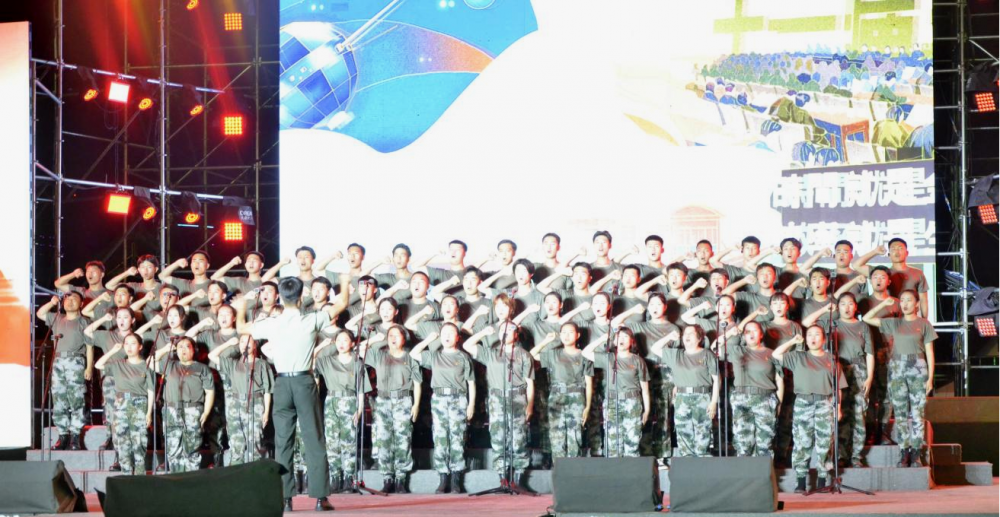 學院合唱隊整齊的隊伍,過硬的作風,積極的態度,樸素統一迷彩的著裝,學院師生頭頂烈日,克服困難,在極短的時間內一遍又一遍的對節目進行排練,用超強的凝聚力謳歌黨、謳歌祖國和人民,用歌聲唱響愛黨愛國的時代主旋律。