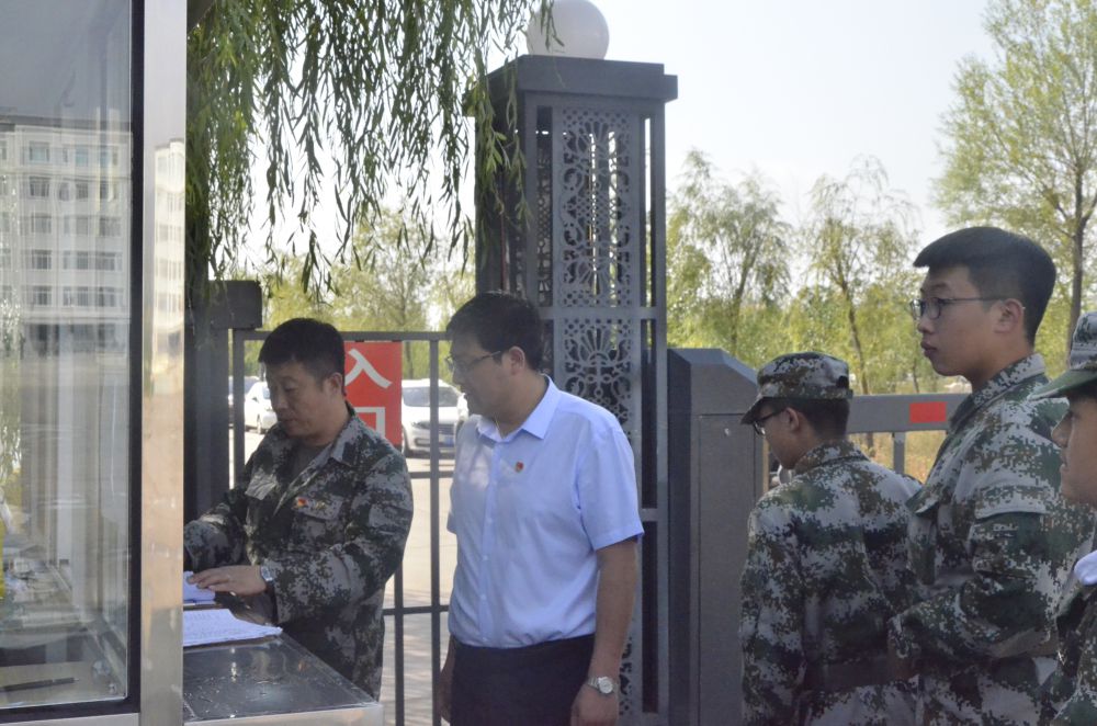 陳書記一行首先來到學校門口,在學生值勤門崗、學院大門門衛兩個點,陳書記分別同值勤學生、門衛安保人員進行親切交談、詳細了解工作情況,詢問應急處理機制,查看應急防暴裝備,最后對節日前夕還堅守在崗位的執勤人員致以節日的問候。在學院食堂,陳書記一行查看食材、樣品、后廚衛生等情況。陳書記強調,“要保障食材新鮮、安全,要讓師生們吃到健康、有營養的食物。”最后來到學院八一樓,陳書記依次走訪慰問了就業處、招生處、后勤處、安保處、學生工作處、財務部、教務處等處室,每到一個部門,陳書記和每一名環節干部、基層干事進行充分的交流,答疑解惑,鼓勁加油,道一句辛苦,說一句節日快樂,感謝堅守者的辛勤付出。