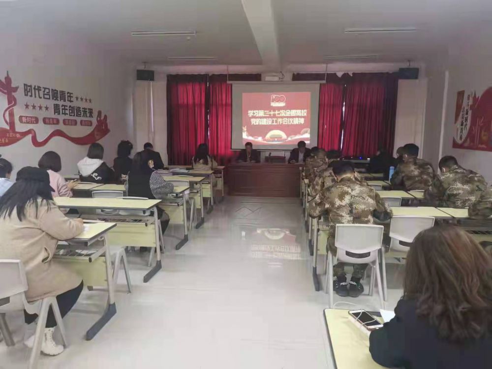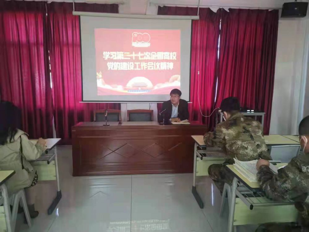 2021年10月11日上午,學院黨總支書記陳澤鋒主持召開專題會議,學習傳達第二十七次全國高校黨的建設工作會議精神。學院黨總支委員、各黨支部書記、團委書記、各職能部門負責人以及教職工黨員參加會議。