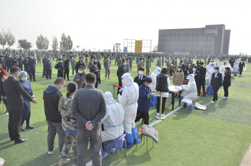 10月25日上午,學校積極協調新城區疾病預防控制中心,來校對全校師生進行全員核酸檢測。為確保檢測覆蓋面和提高檢測效率,學校疫情防控工作領導小組第一時間安排部署,各相關部門通力合作,在短時間內摸排統計應檢人員信息,提前發布有關通知和注意事項,協調人員布置搭建核酸檢測采樣點。采樣現場嚴格按照防疫要求拉好隔離帶、布置警戒線,劃分出核酸檢測等候區、登記區、采樣區、出口區、臨時隔離區等區域。前來檢測的師生們提前掃碼填報個人信息、生成個人二維碼,經掃碼等候、信息確認后,每10人一組,依次進行采樣,現場秩序井然。