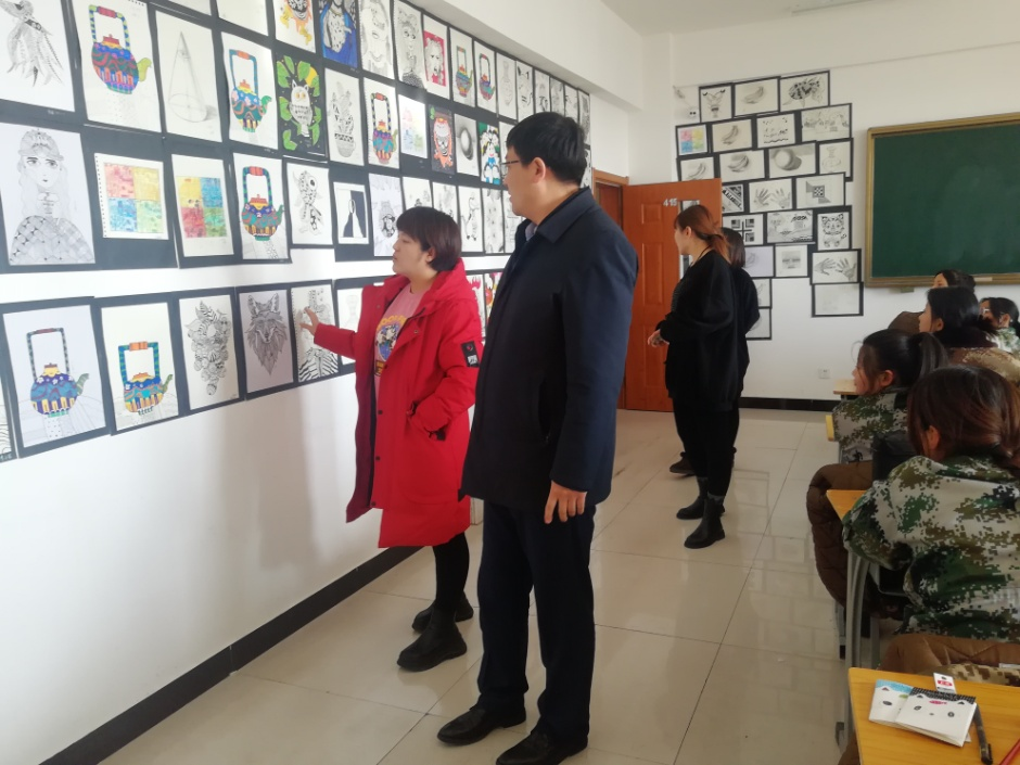 學院黨總支書記陳澤鋒、副院長張瑞英等領導和老師紛紛到教室觀看展覽,對學生的作品給予肯定,并對學生在短時間內取得這樣的進步提出表揚。
