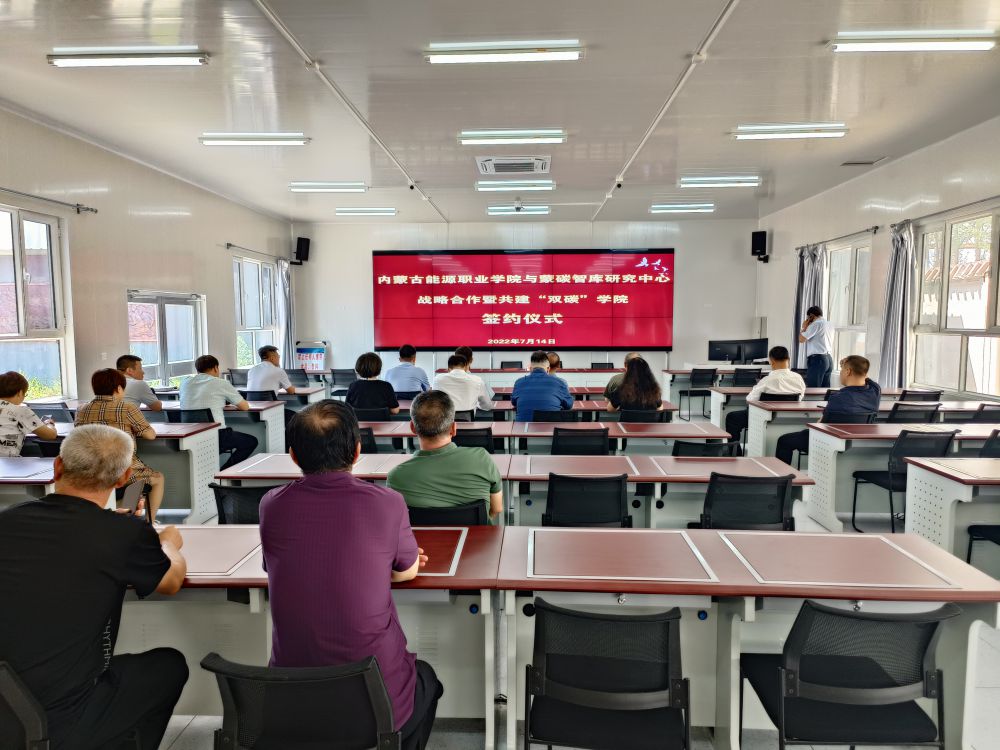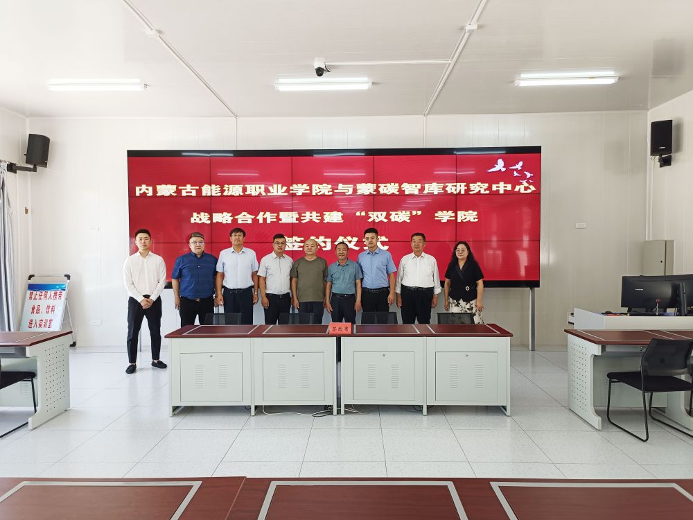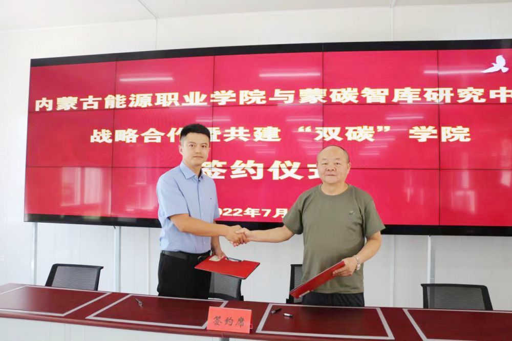 2022年7月14日上午,內蒙古能源職業學院與內蒙古蒙碳智庫研究中心舉行“建設自治區高質量雙碳專業高校”的戰略合作項目簽約儀式。學院院長趙曉峰、黨委書記陳澤鋒,蒙碳智庫副理事長聶大為等有關領導出席簽約儀式。