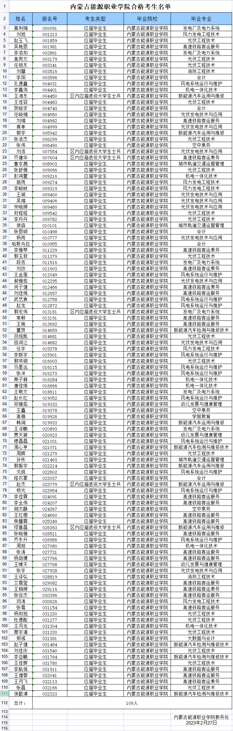 內(nèi)蒙古能源職業(yè)學(xué)院合格考生名單