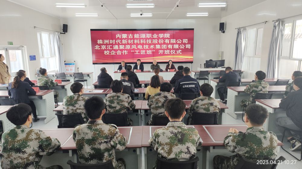 2023年4月21日上午,內(nèi)蒙古能源職業(yè)學(xué)院同株洲時代新材科技股份有限公司、北京匯通聚原風電技術(shù)集團有限公司在學(xué)院仿真實訓(xùn)室舉行校企合作“工匠班”開班儀式。中車時代新材風電產(chǎn)品事業(yè)部蒙西分公司黨支部書記唐革新,北京匯通聚原風電技術(shù)集團有限公司董事長高海坡,學(xué)院院長趙曉峰,學(xué)院和兩大公司相關(guān)部門負責人,風電工匠班同學(xué)出席會議。會議由學(xué)院副院長張瑞英主持。