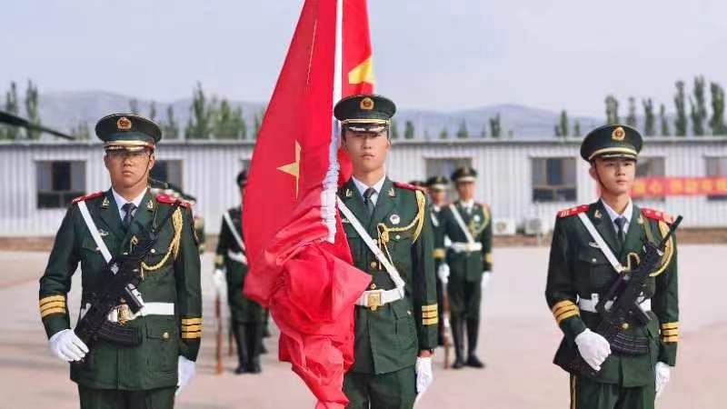 上午十點整,國旗護衛隊隊員莊嚴入場。他們步履鏗鏘,用挺拔的軍姿、雄壯威武的氣勢,向全體師生展示出能源學子氣宇軒昂的精神風貌。軍訓匯報表演在莊嚴肅穆的國歌聲中拉開帷幕,全體人員面向國旗,行注目禮。