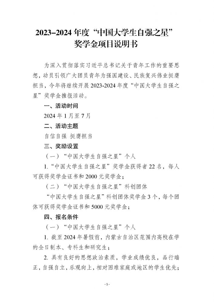 2023-2024年度“中國大學生自強之星” 獎學金項目說明書