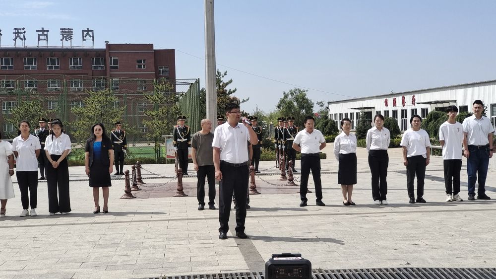 儀式開始,國旗護旗隊邁著鏗鏘有力的步伐,昂首闊步,護衛五星紅旗走向升旗臺。隨著高亢雄壯的國歌響起,鮮艷的五星紅旗映著朝陽徐徐升起,迎風飄揚,全體師生面向國旗、同唱國歌,表達對黨的深切祝福、對偉大祖國的崇高敬意。