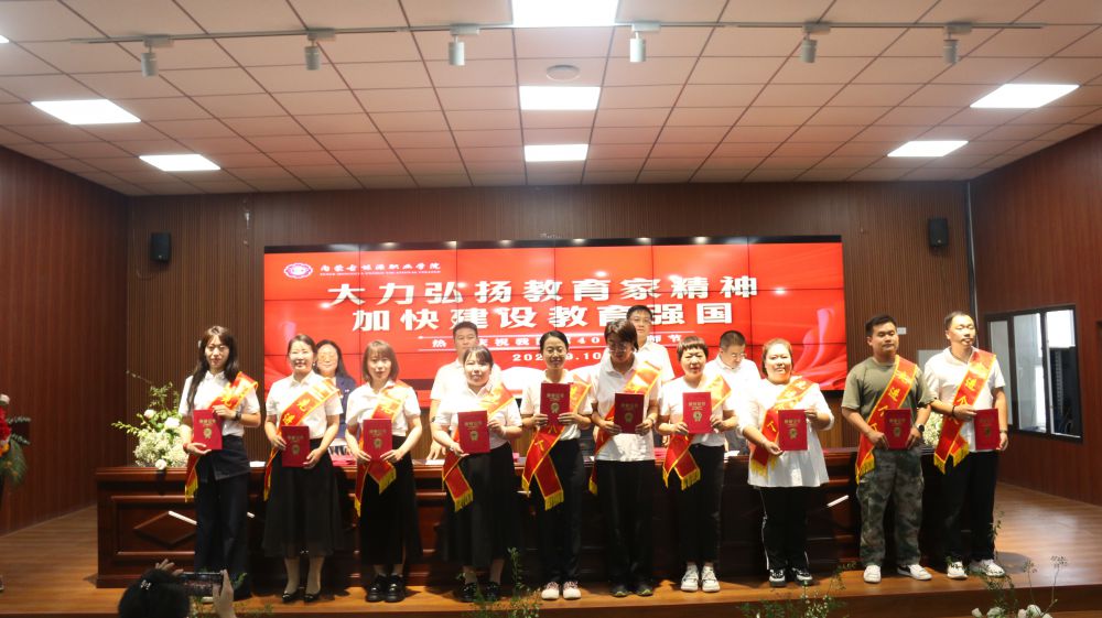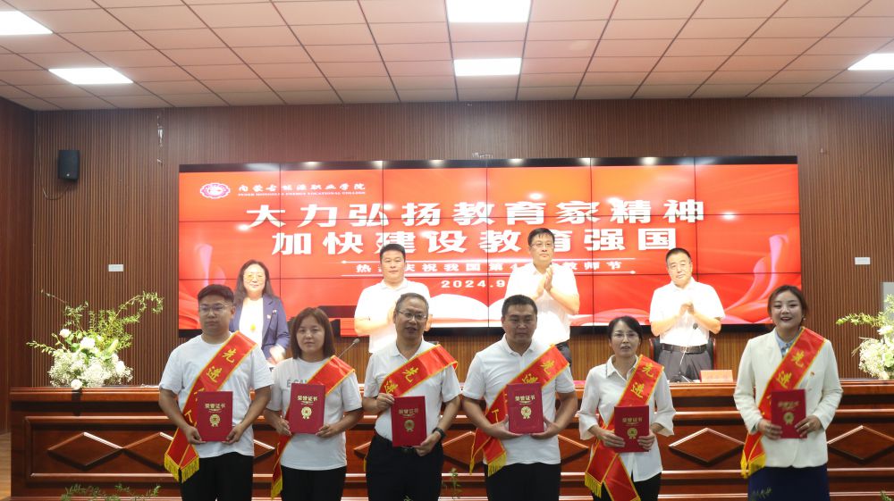 學院領導為獲得“優秀教師”“優秀輔導員”“優秀教育工作者”頒發榮譽證書。