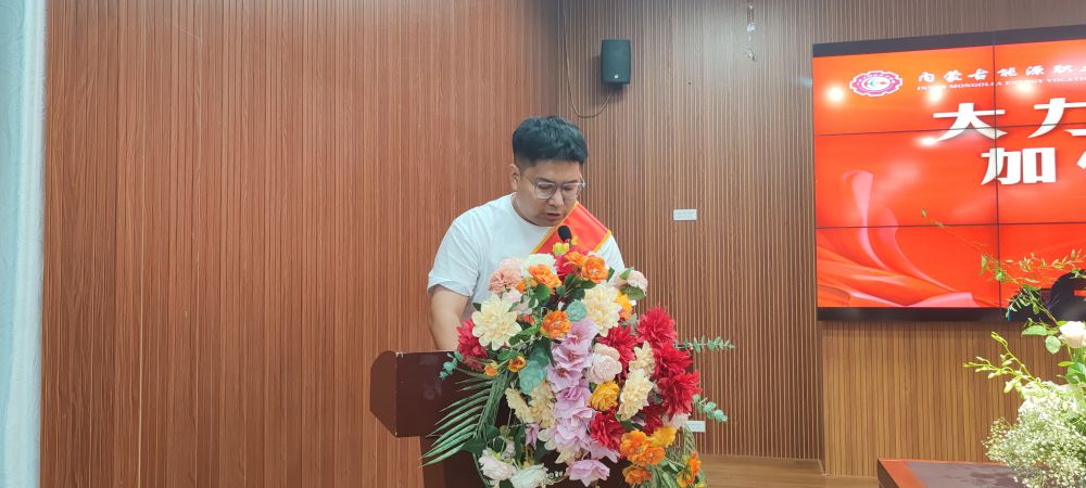 邢文采宣讀《關于表彰優秀教師、優秀輔導員、優秀教育工作者的決定》文件;白亞楠宣讀關于對王丹暘同志榮獲自治區榮譽的表揚通報。