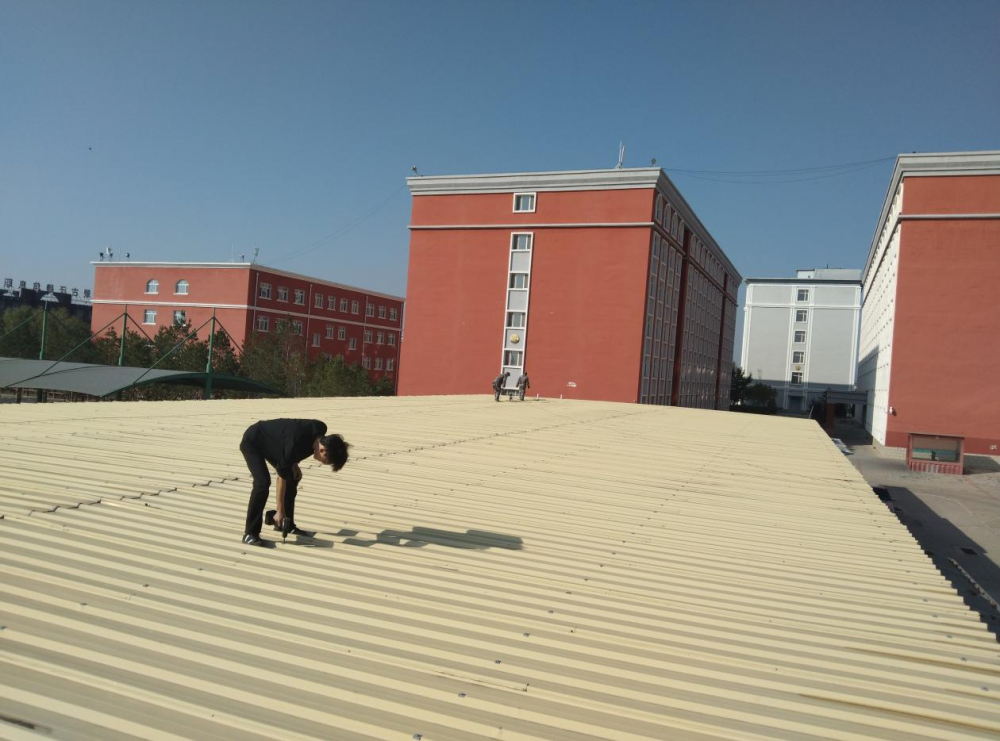 防水加固工程:針對近期東實訓室、教學樓出現的屋頂滲漏問題,后勤處迅速組織專業施工隊伍,對問題區域進行了全面的防水處理。通過鋪設新型防水材料措施,有效解決了雨水滲透問題,保障了建筑內部環境的干燥與整潔。