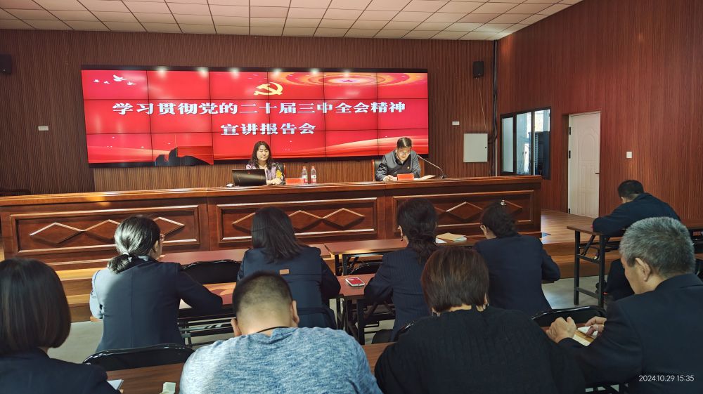 為深入學習貫徹黨的二十屆三中全會精神,深入學習領會習近平總書記在黨的二十屆三中全會上的重要講話精神,引導廣大師生將全會精神領會深、理解透、把握準,切實把思想和行動統一到全會精神上來。10月29日下午,學院邀請內蒙古黨校黨史黨建教研部于美麗教授作了題為《深刻把握黨的二十屆三中全會的科學內涵與實踐要求》的報告。全體教職工,學生黨員、發展對象參加宣講會。會議由學院黨委書記陳澤鋒主持。