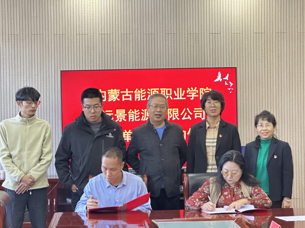 遠景能源有限公司內蒙古片區負責人楊庭、內蒙古片區負責人助理王樂、我院常務副院長張瑞英,相關處室負責人參加了簽約儀式。