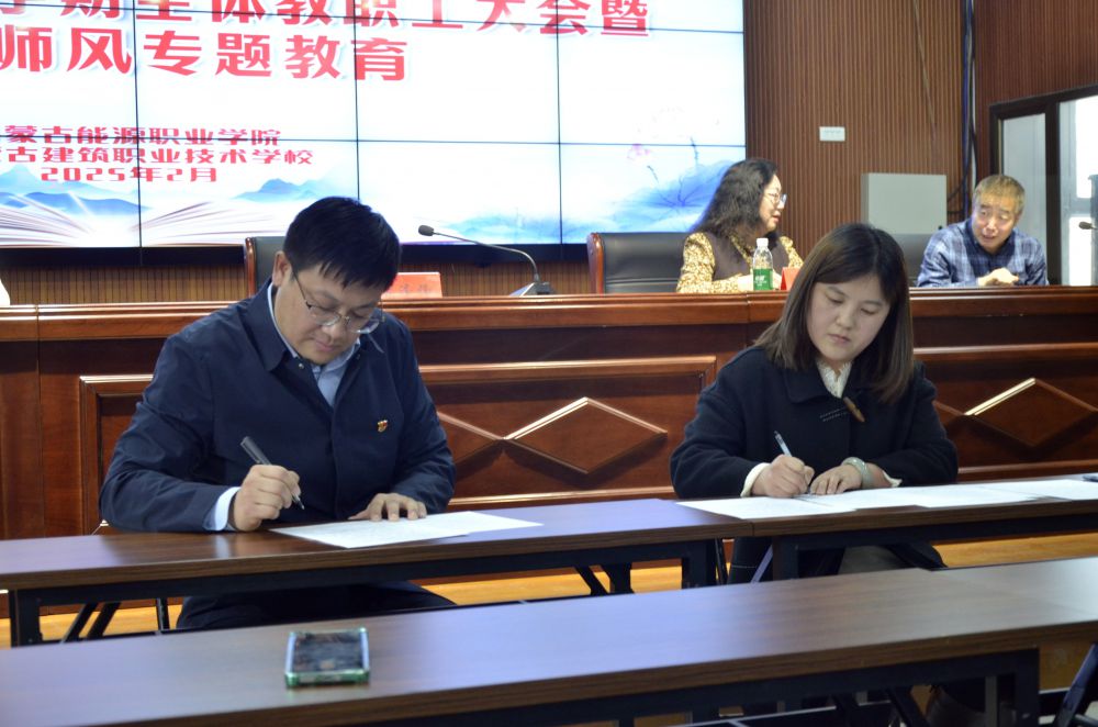會議傳達2025年全區教育工作會議精神,集體學習《新時代高校教師職業行為十項準則》與《新時代中小學教師職業行為十項準則》及違反師德師風教育警示典型案例。全體教職工逐一簽訂《師德師風承諾書》。
