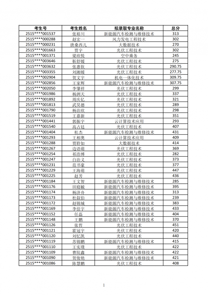 附件:內蒙古能源職業學院2025年第二次單獨招生考試擬錄取名單