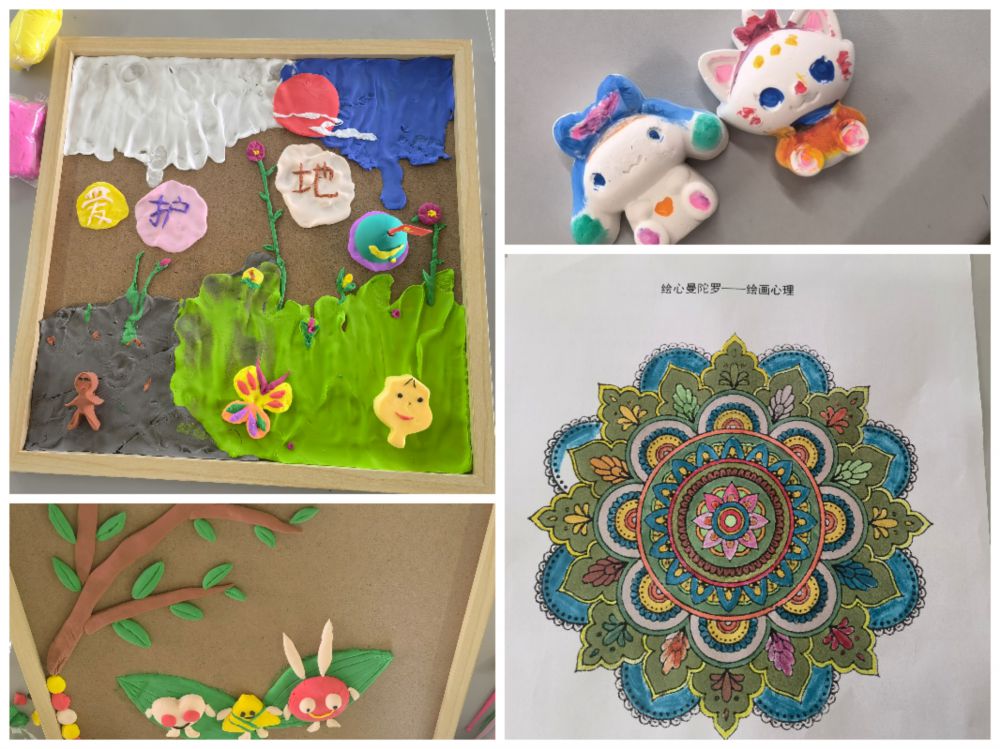 心理健康教育中心岳麗娟老師精心設計活動過程,融合傳統端午元素,帶領老師們共同完成縫制艾草香囊、盤子畫、曼陀羅繪畫、粘土畫框等體驗環節,引導老師們沉浸于輕松愉悅的節日氛圍中。鍛煉動手能力的同時,更讓教師們體會到了“專注當下”的正念理念,感受到手與心的和諧共鳴。