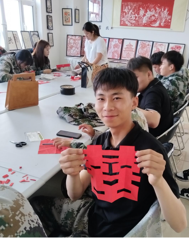 為進(jìn)一步弘揚(yáng)中國(guó)傳統(tǒng)文化,推動(dòng)非物質(zhì)文化遺產(chǎn)的傳承與發(fā)展,當(dāng)日下午,學(xué)生們走進(jìn)非遺展覽活動(dòng)室開(kāi)展以“非遺文化進(jìn)課堂,皮雕剪紙共傳承”為主題的思政實(shí)踐課。