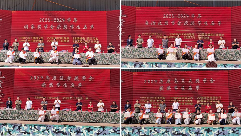 學院黨委副書記、副院長白亞楠宣讀2025年畢業生榮獲國家、自治區、筑夢、烏蘭夫等4類獎學金和自治區技能大賽獲獎學生名單;教務處長劉國華宣讀學院關于準予2025屆學生畢業的決定;學工處處長宋成勝宣讀學院2025屆三好學生、優秀學生干部、優秀畢業生、優秀班集體名單。院領導為獲獎學生代表頒發證書,為畢業生代表授予畢業證書。