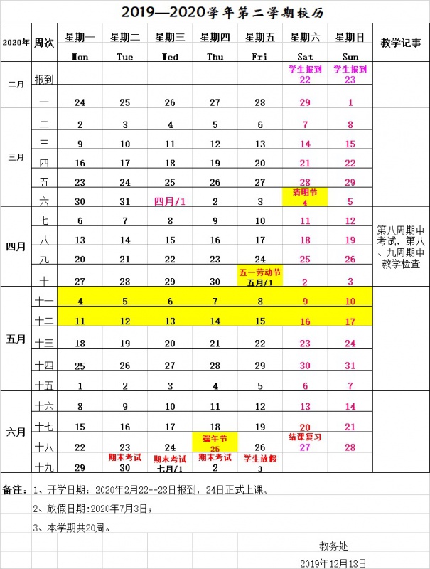 2019—2020學(xué)年第二學(xué)期校歷