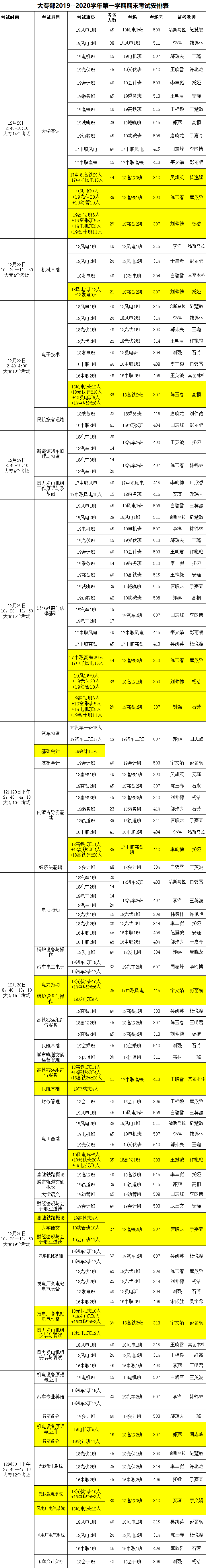 大專部2019-2020學(xué)年第一學(xué)期末考試安排