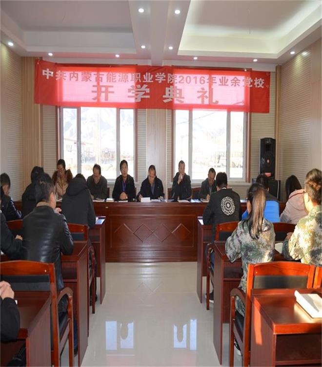 中共內蒙古能源職業學院業余黨校開學典禮于2016年11月23日16:00在我院八一樓成功召開。 本次開學典禮由副院長謝飛主持。本次主講教師有:內蒙古能源職業學院黨總支書記常務副院長閆永平教授、學院黨總支委員、副院長謝飛老師、學院黨總支委員學生支部書記孟然老師、教工支部書記許艷艷老師。宣傳部部長王君老師,孫霖老師,參加的還有90名15級團積極分子。 開學典禮共七項: 第一項:謝飛同...